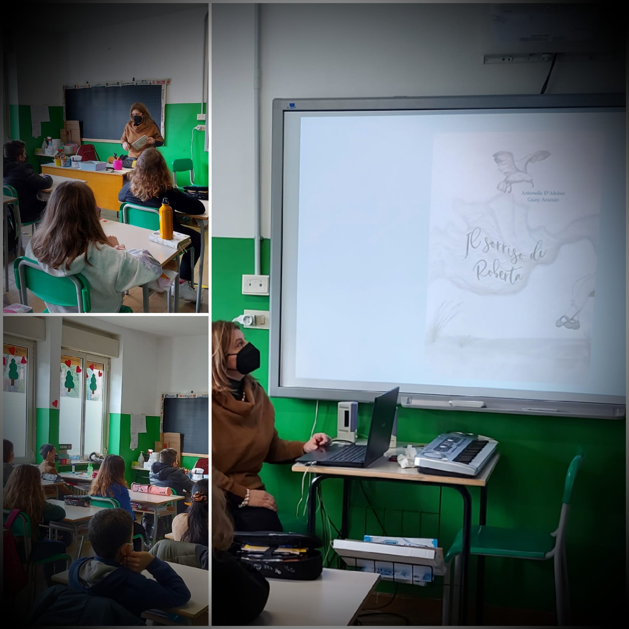 Nell’ambito del progetto di avviamento alla lettura e alla scrittura creativa 《PIÙ LIBRI, PIÙ LIB(E)RI》ormai giunto alla sua terza edizione,questa mattina i piccoli alunni delle classi 4A, 4B, 4C, 5A del plesso della primaria di Via Maratona hanno incontrato la scrittrice Antonella D’Aloisio che ha coinvolto i bambini nella scoperta del suo racconto ”Il Sorriso di Roberta”: un albo illustrato basato su una storia vera, attraverso la quale la protagonista, Anna Chiara scopre il significato della vera amicizia.